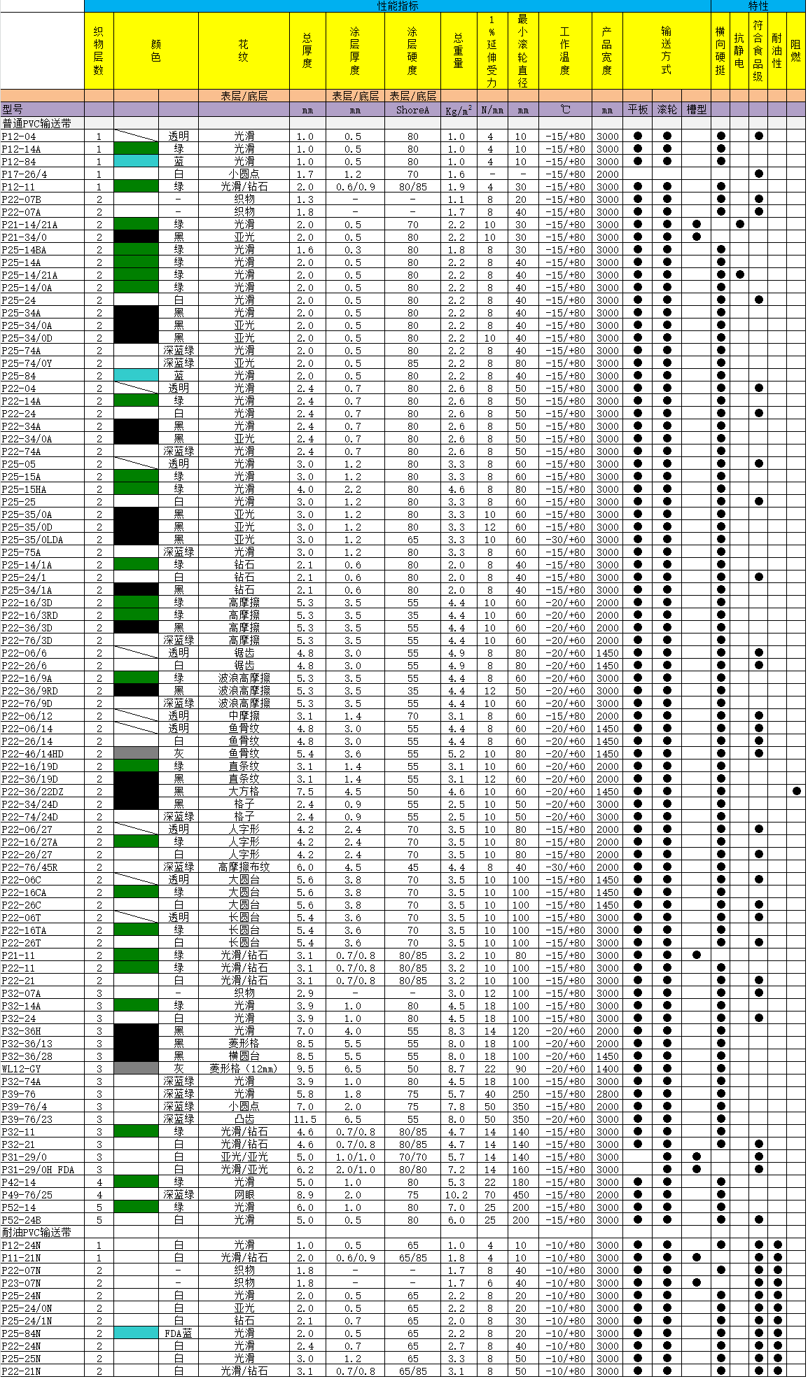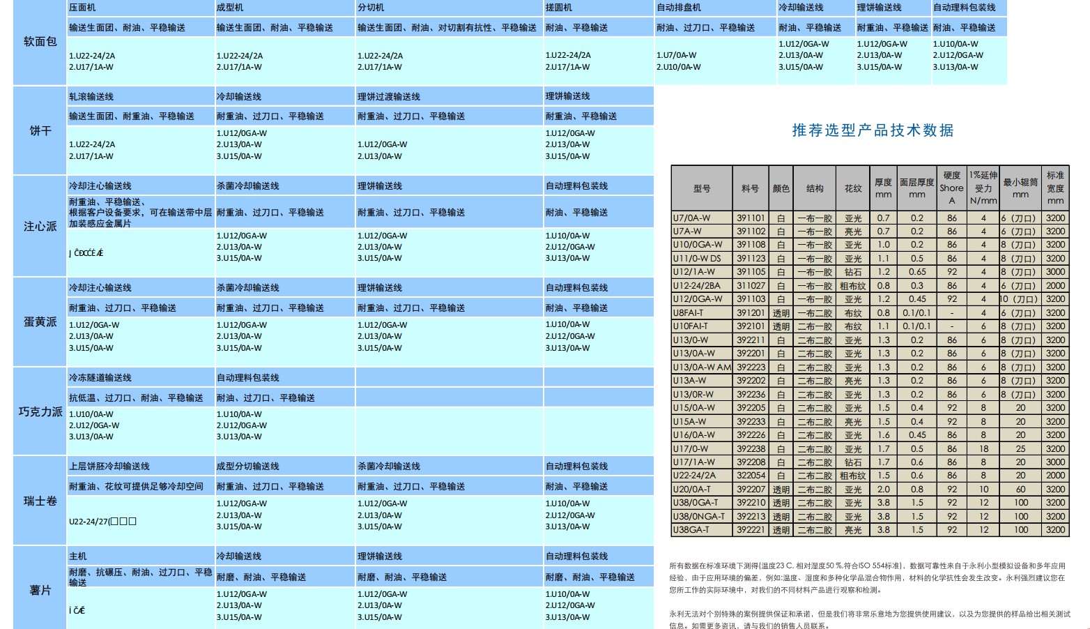 上海永利YONGLI食品輸送帶參數表 點擊下載